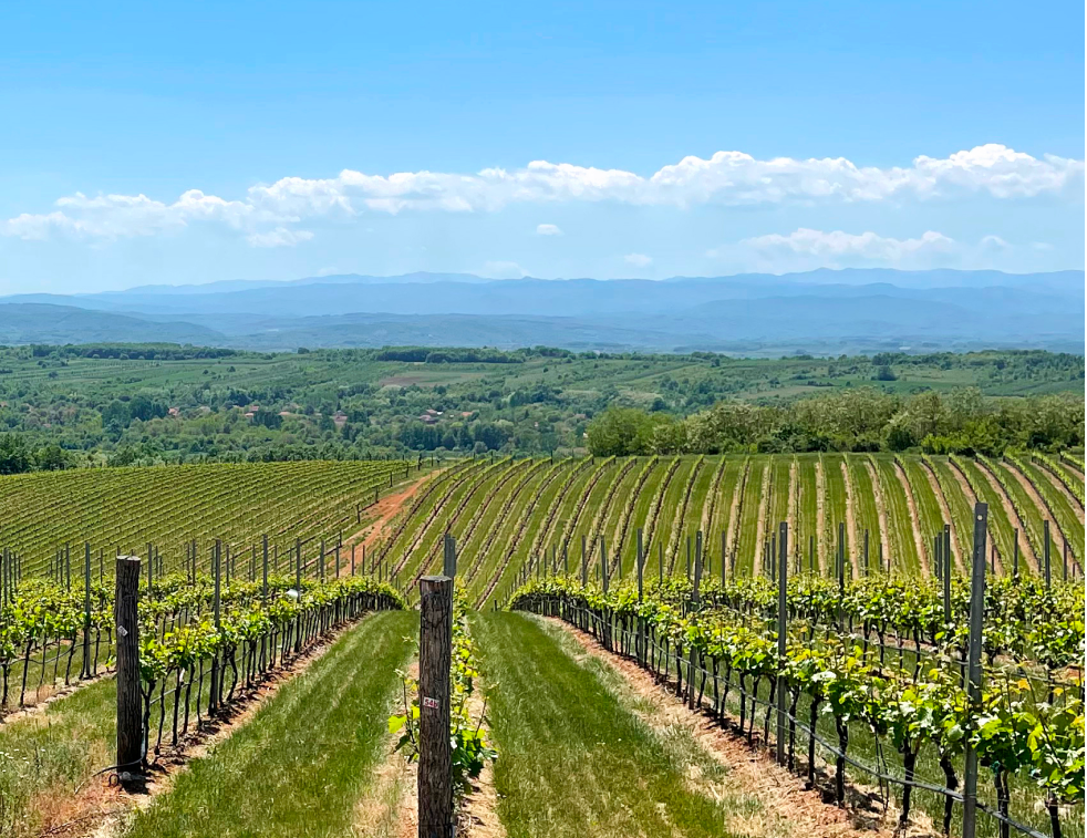 Harvest typically begins in early September for Pinot Grigio, Tamjanika, and Chardonnay, in late September for Merlot, and mid-October for Cabernet Sauvignon and Prokupac.
