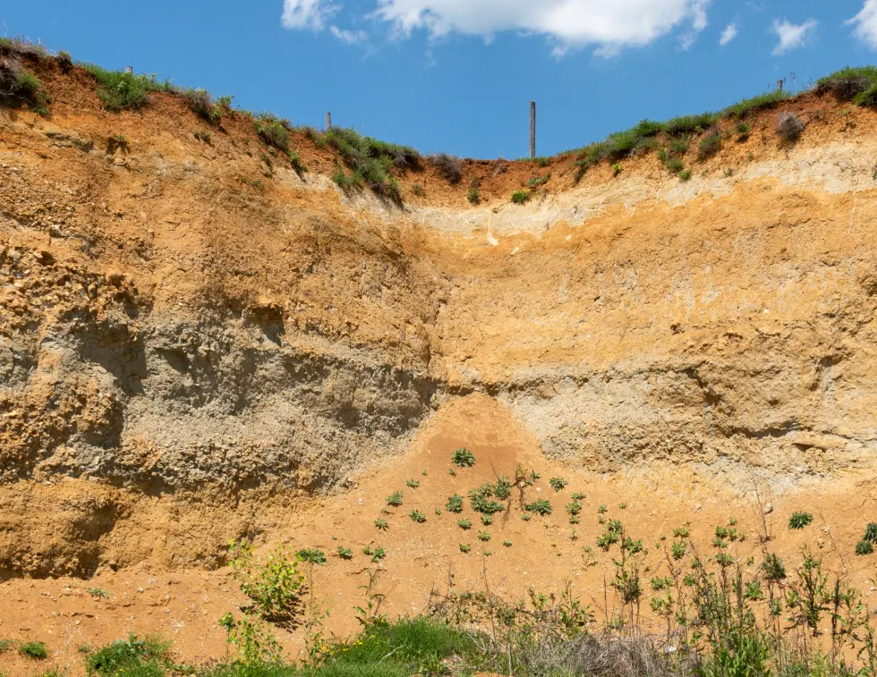The soils are deep and loose, formed on tertiary-age lake sediments dominated by crystalline schists. Quartz fragments of various sizes are found throughout the profile. The soil is medium-skeletal, loamy in texture, well-drained, and well aerated, with low humus content (1–1.5%). Its reddish color comes from iron oxides. The schists and quartz pieces reflect light and retain heat. Their soft structure allows the roots to reach deep into the soil in search of water and minerals, even in dry conditions. This type of soil, together with the specific mesoclimate, provides ideal conditions for producing high-quality grapes and authentic wines.