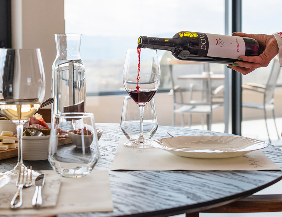Iznad podruma nalazi se degustacioni prostor i restoran gde ćete imati priliku da, uz vođenu degustaciju isprobate naša vina. Ceo prostor dizajniran je u svedenim formama i prirodnim materijalima poput drveta, granita i kamena iz lokalnih majdana. Iz degustacione sale se pruža veličanstven pogled na vinograde i jezero u podnožju vinograda. Ukoliko se zadržite do kasnih popodnevnih sati, prisustvovaćete nezaboravnom zalasku sunca, koje nestaje iza vinograda i obrisa planine Kopaonik. Iskusite vinsku avanturu kroz Toplicu i opustite se uz autentična vina i gostoprimstvo osoblja vinarije Doja.